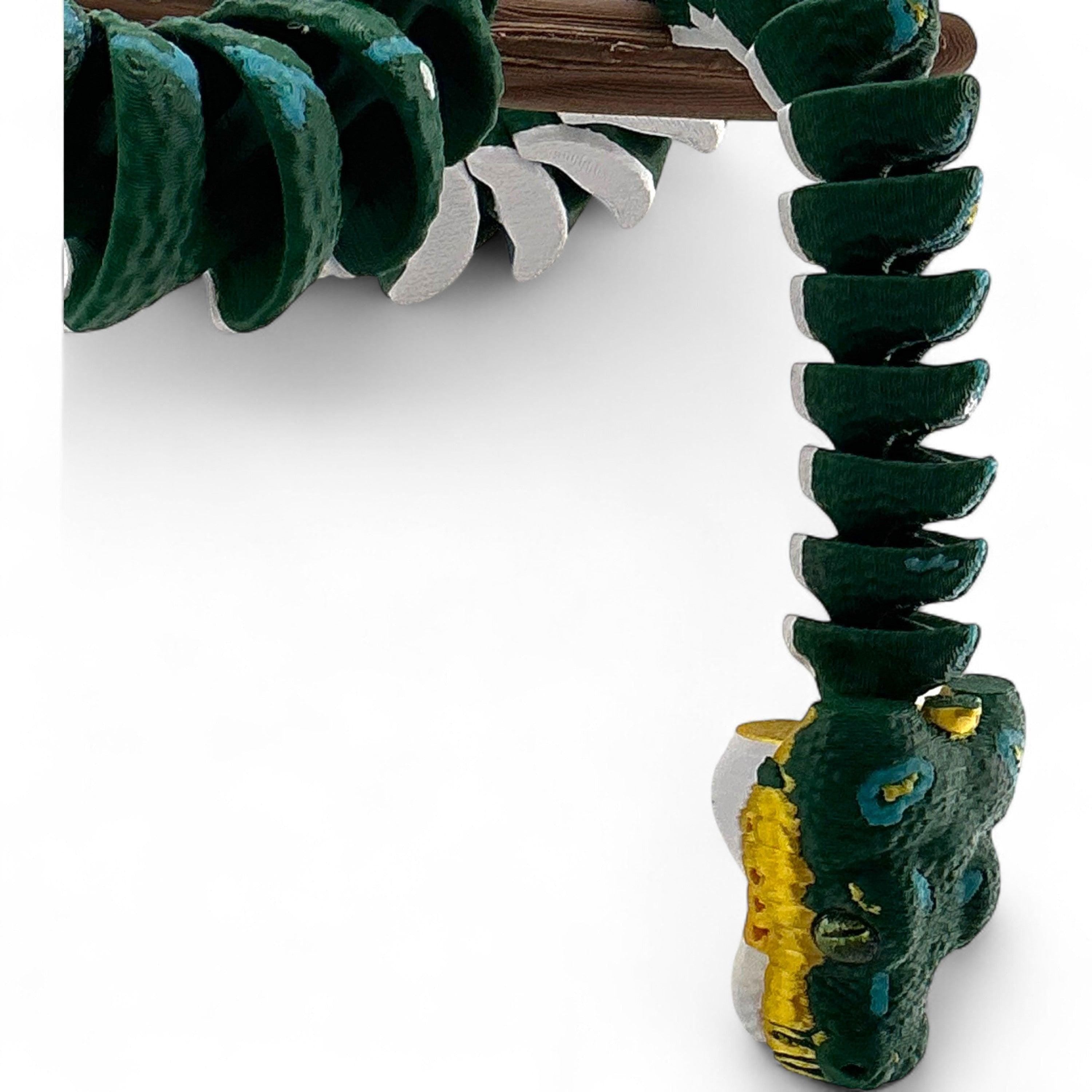 This 3D printed Emerald Tree Boa captures the vivid beauty of one of nature’s most striking snakes. Designed with flexible articulation, it can be posed naturally on branches or displayed flat. The vivid green, yellow, and white coloration adds a lifelike touch, making it perfect for collectors, reptile enthusiasts, and nature-inspired decor.