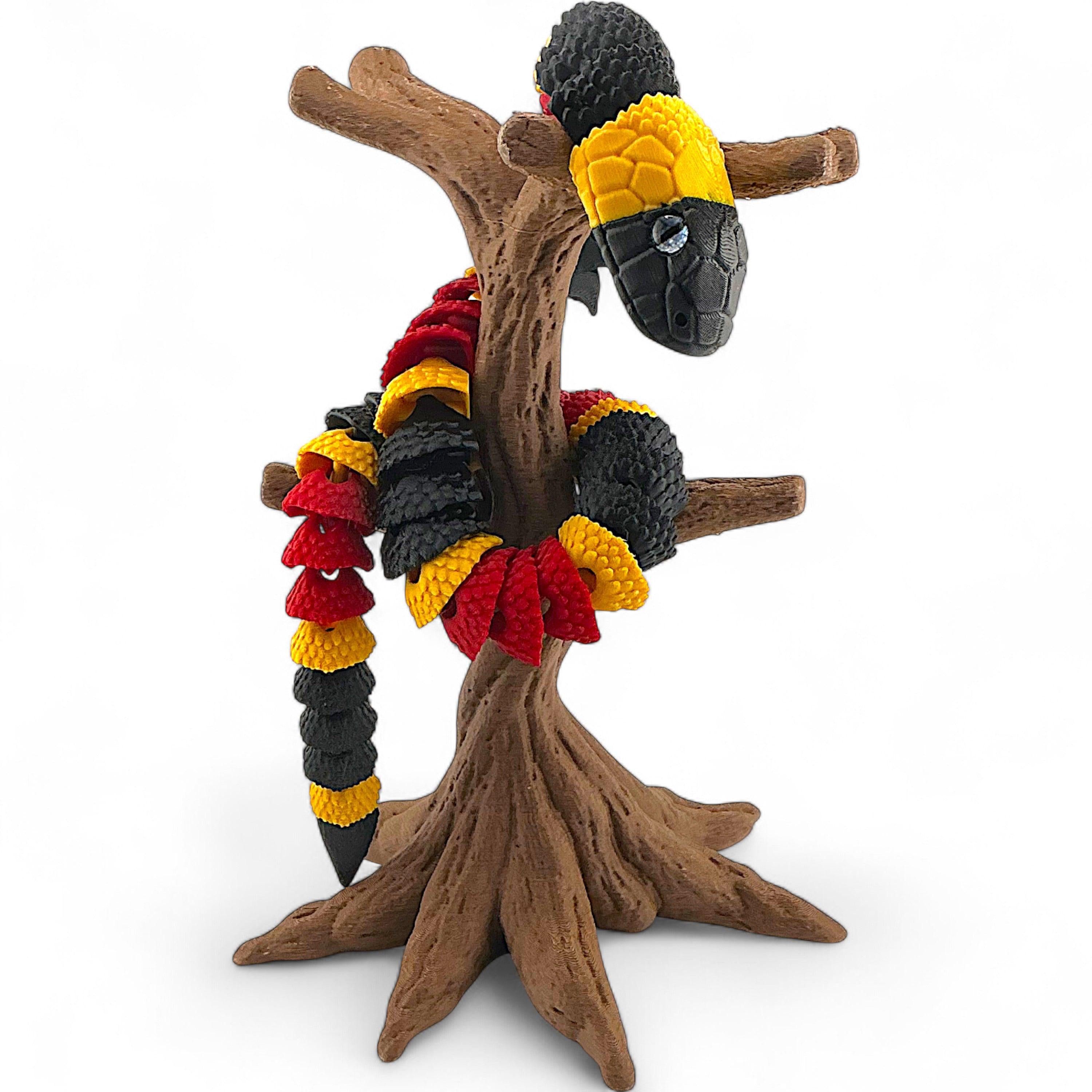 3D Printed Flexy Coral Snake – 22 Inches Long with Glass Eyes (Optional Tree Stand)