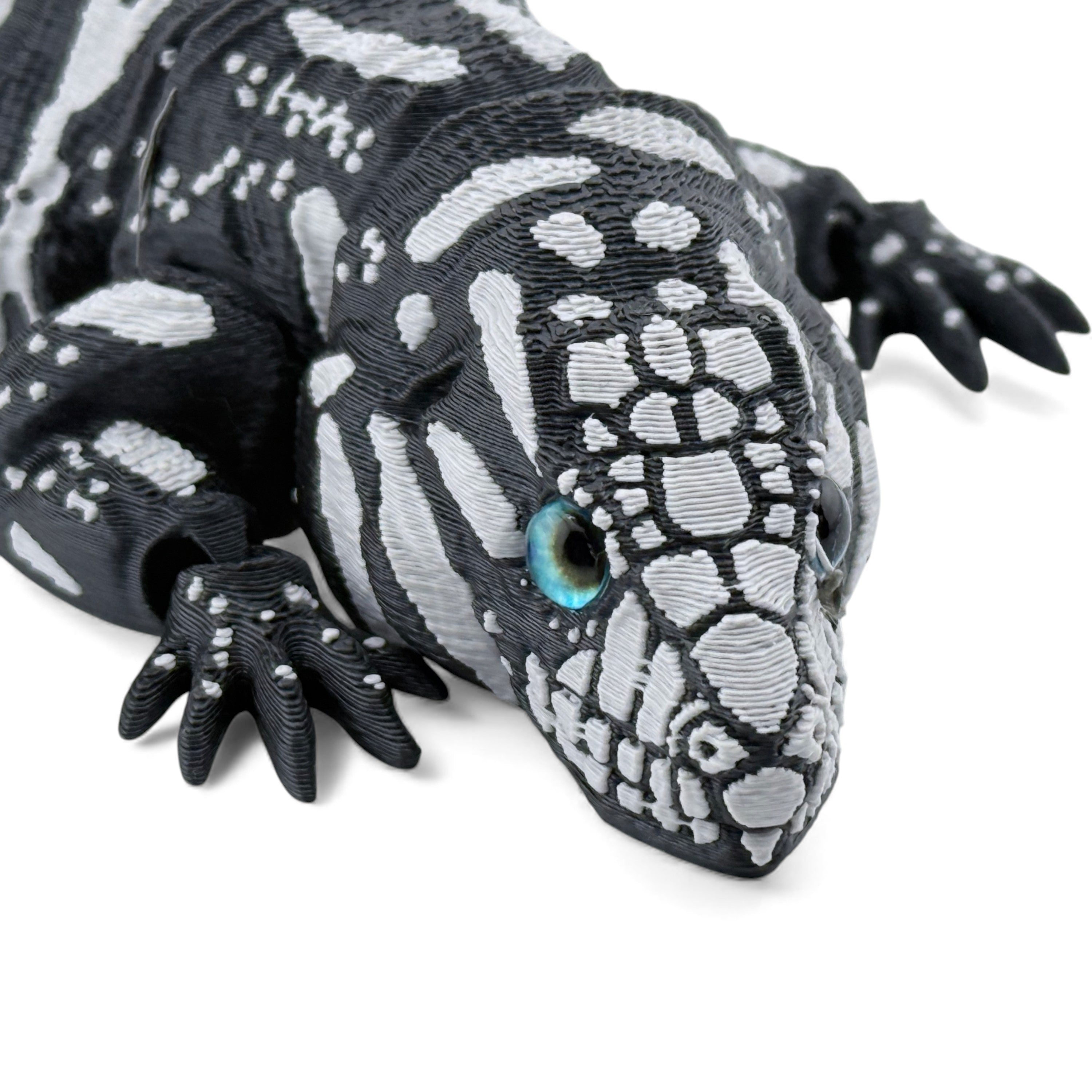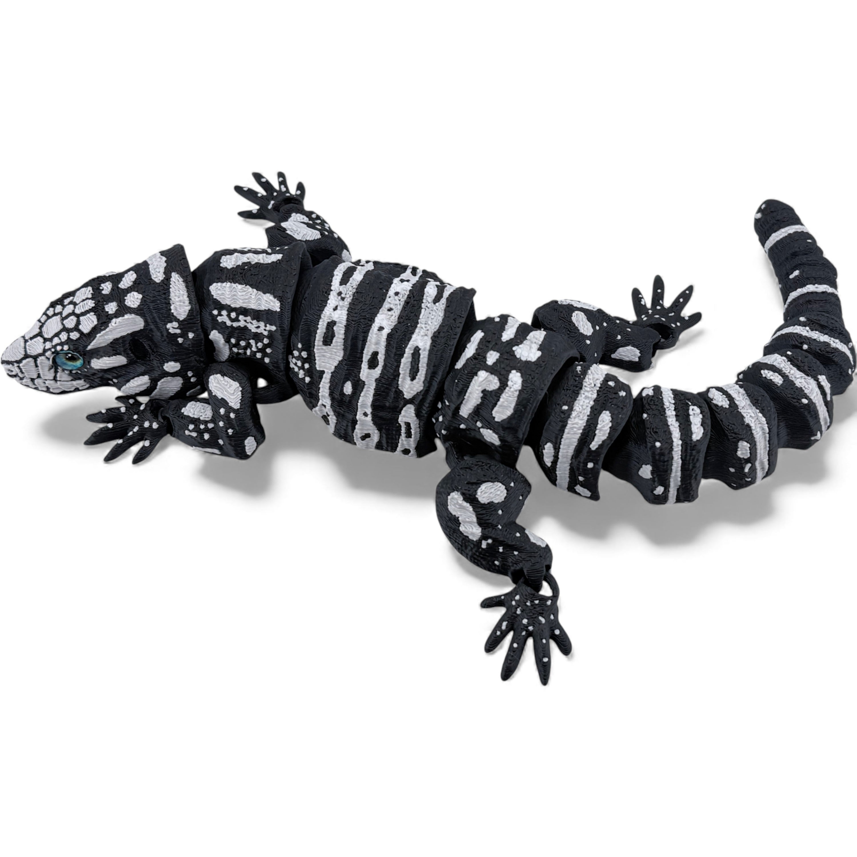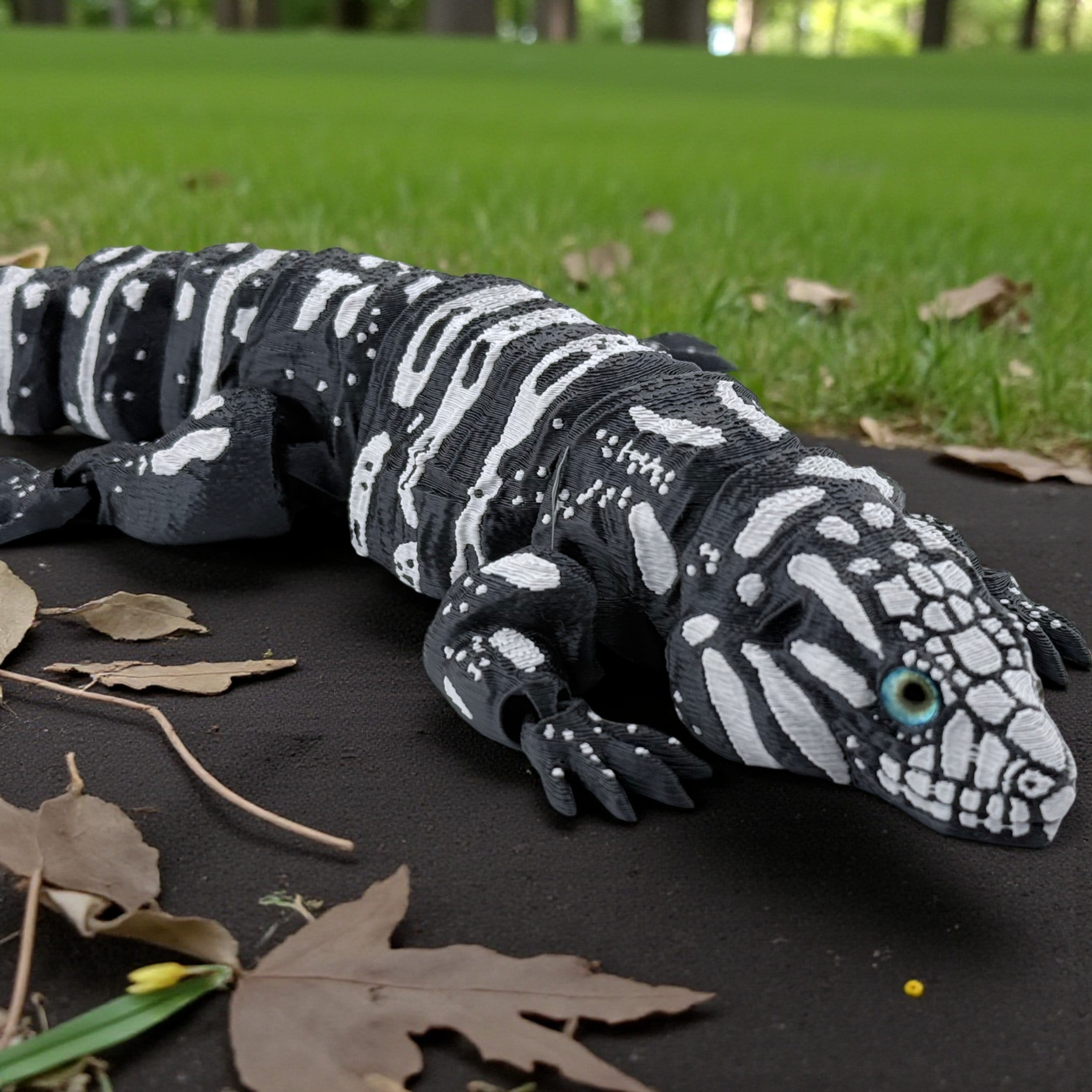 3D Printed Tegu with Realistic Glass Eyes – Black Variant (10 Inches Long)
