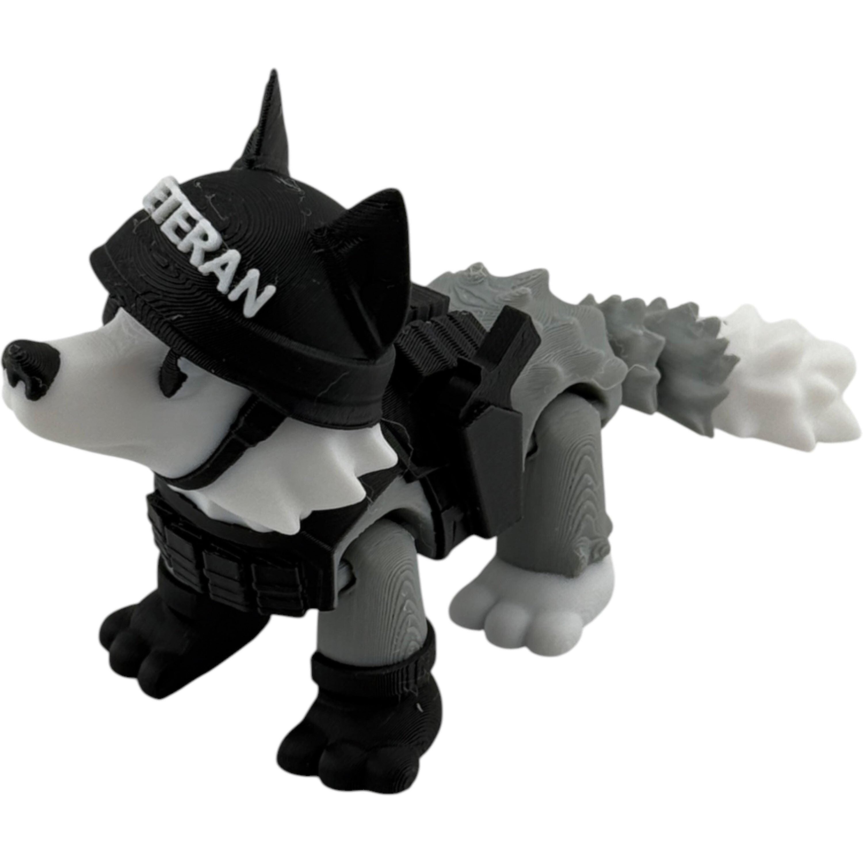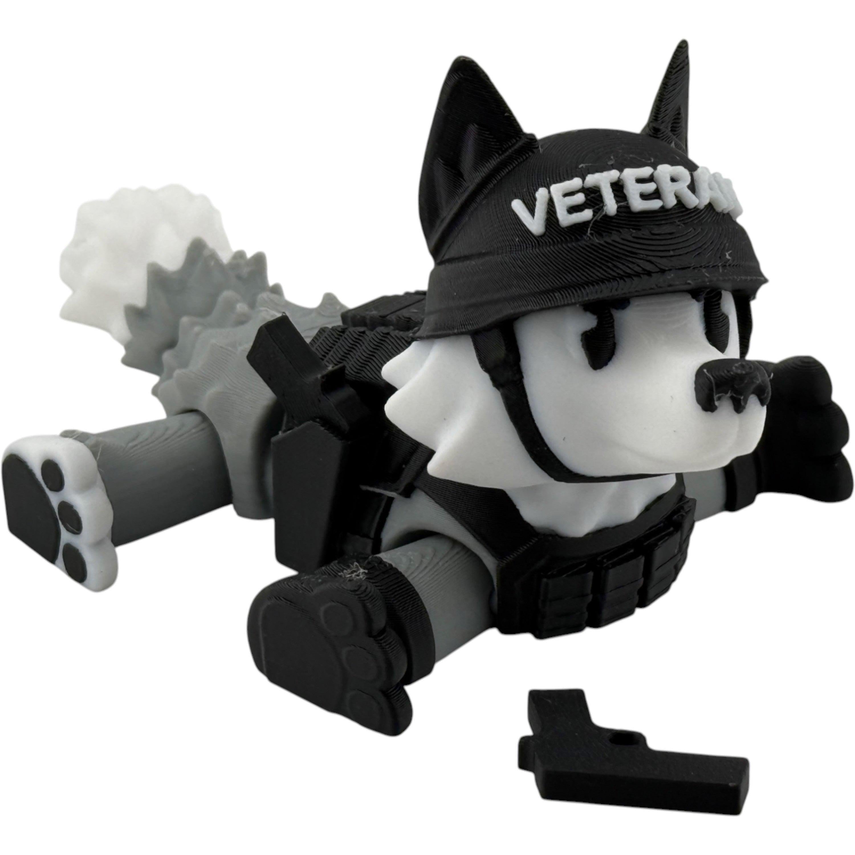 3D Printed Veteran Dog Figurine: Tactical Gear, Detachable Pistols - Made in USA