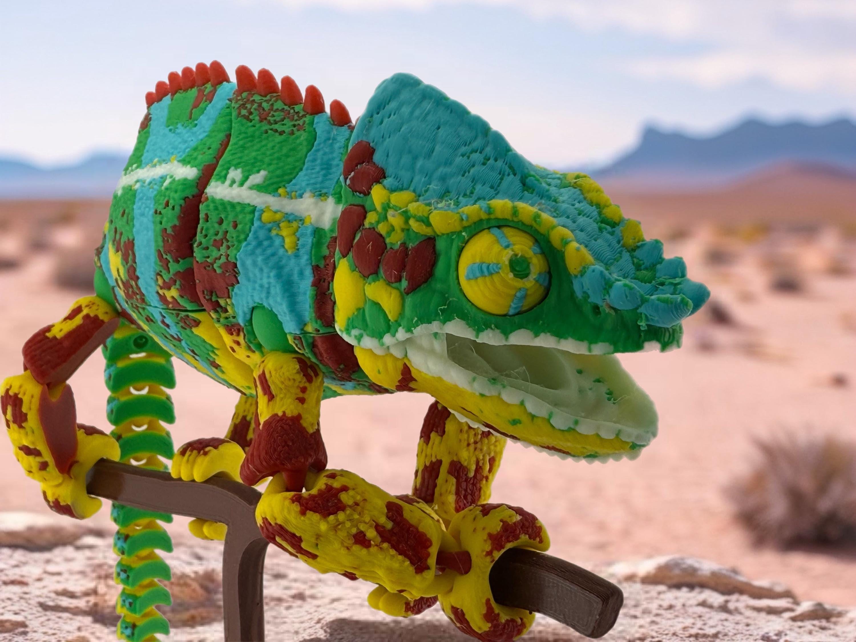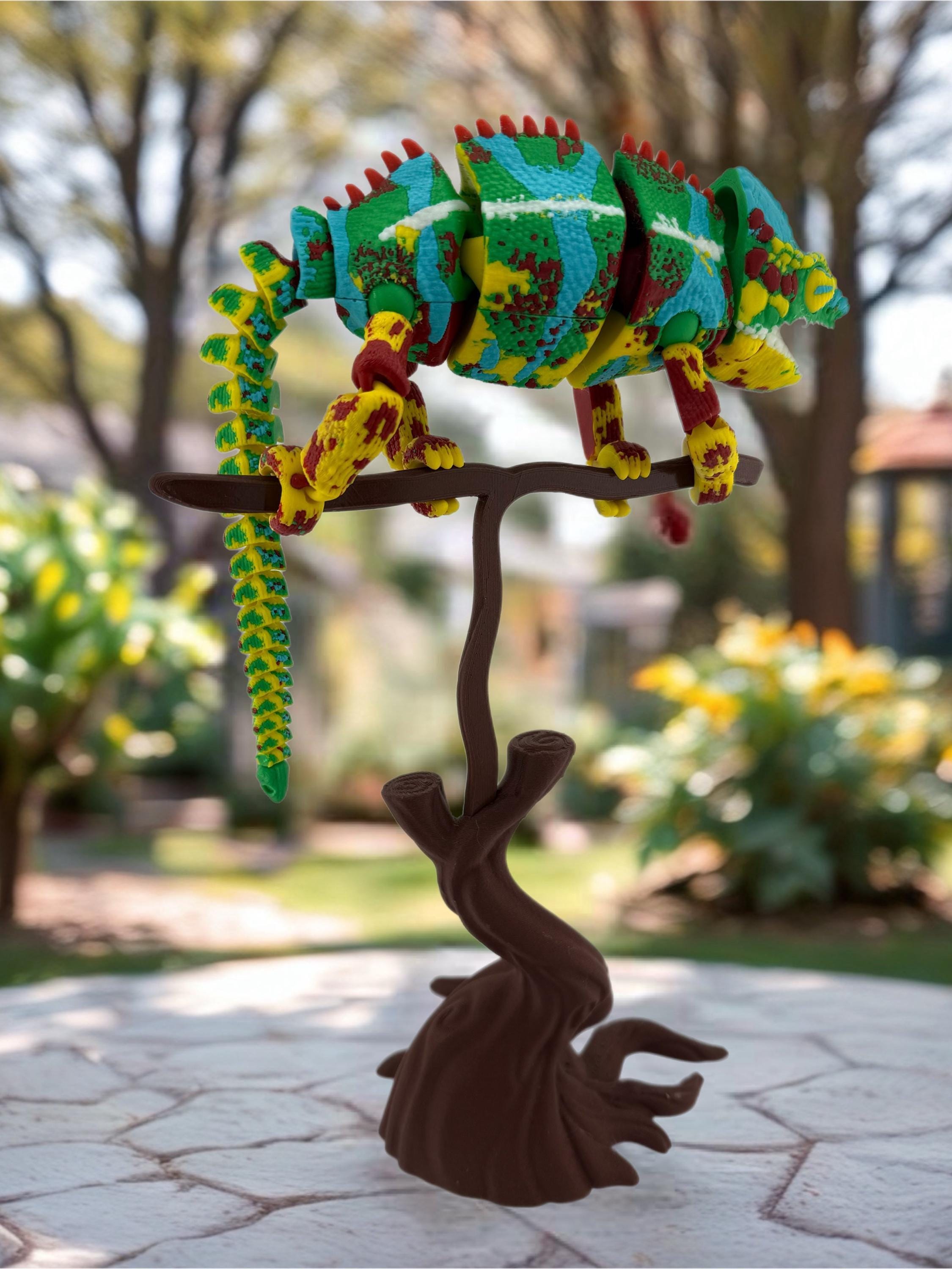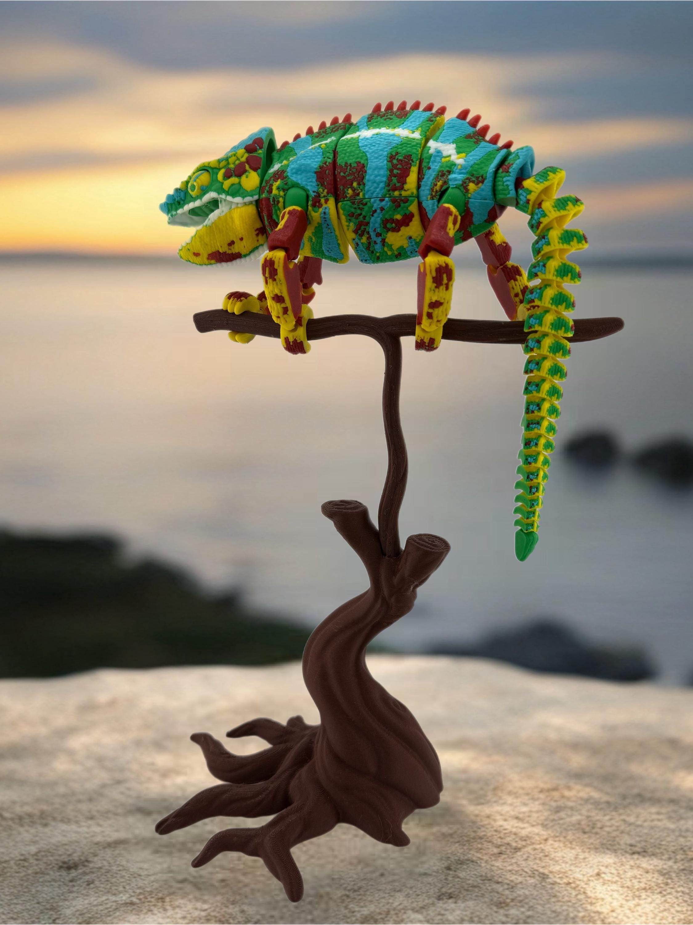 This 3D Printed Panther Chameleon Figurine captures the vivid color and lifelike charm of one of nature’s most stunning reptiles. Designed perched on a branch, it showcases the chameleon’s signature posture, realistic scaling, and finely detailed features. Measuring approximately 12 inches long and 5 inches high, this model makes a captivating piece for reptile collectors, nature lovers, or as a standout decorative sculpture.