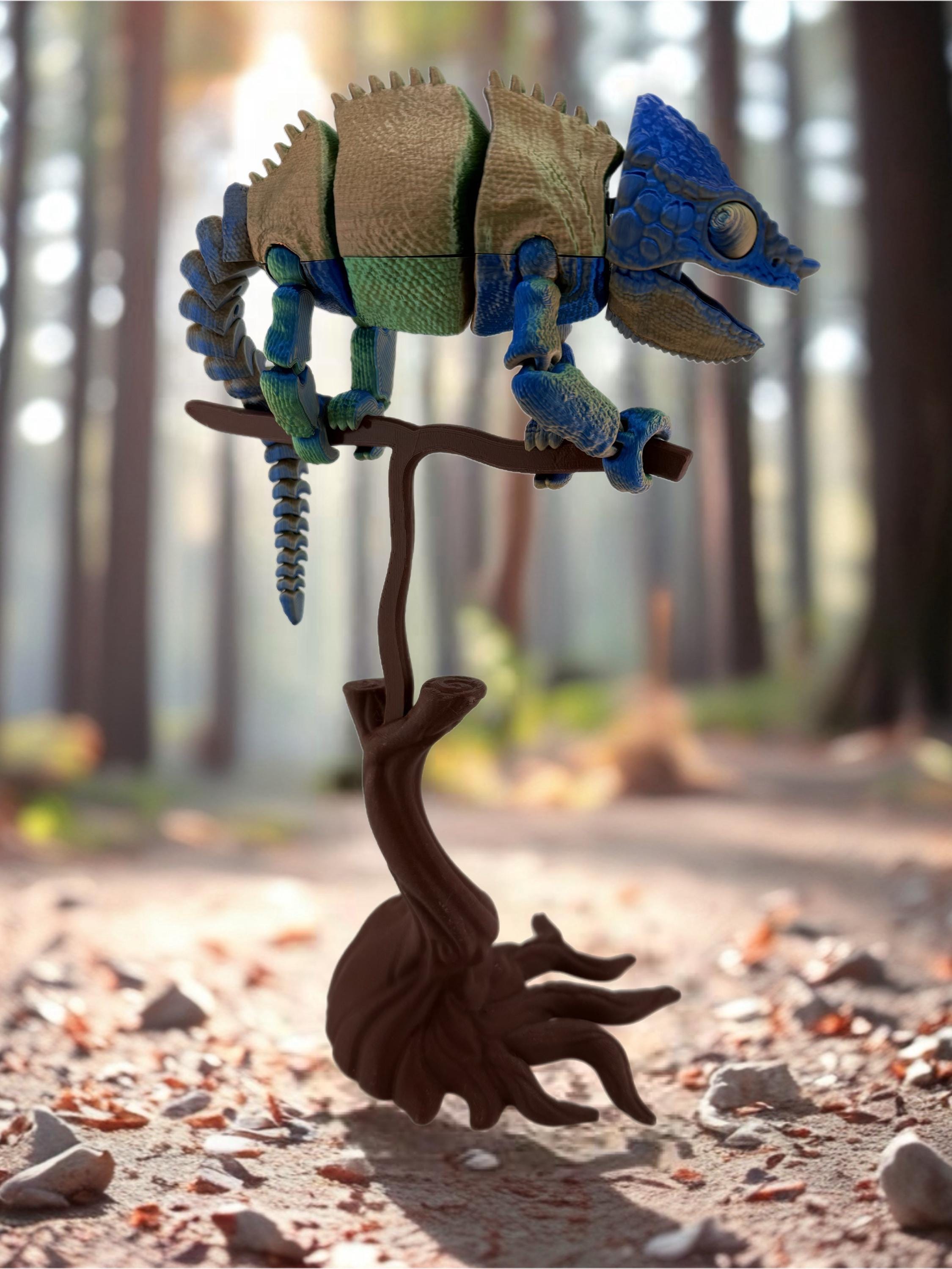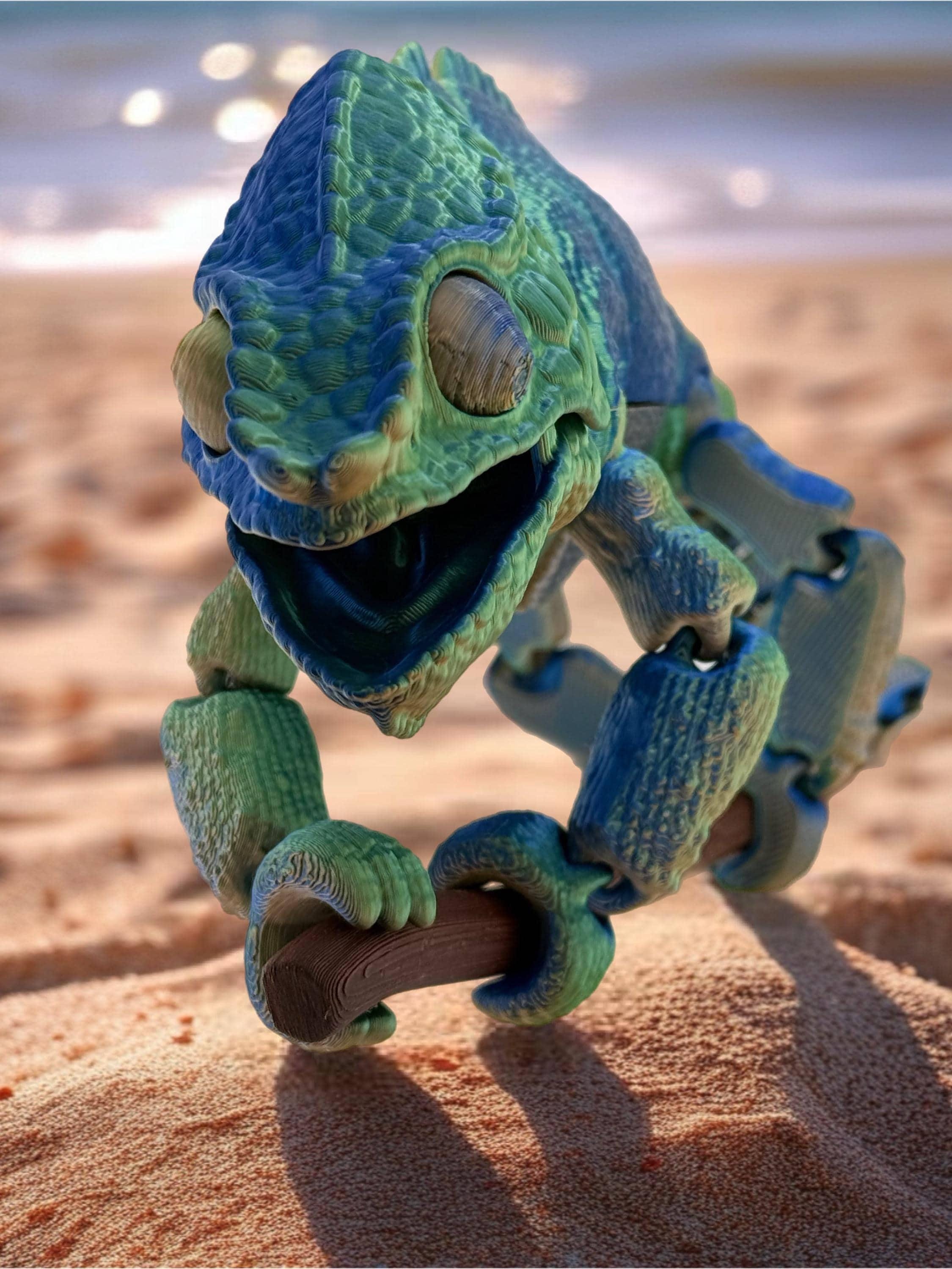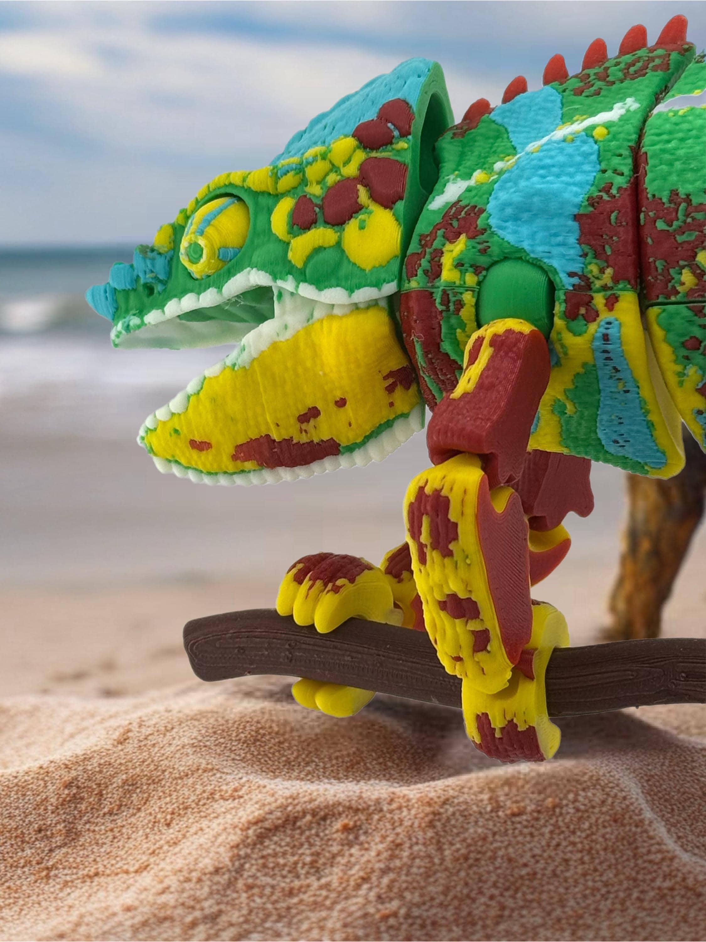 This 3D Printed Panther Chameleon Figurine captures the vivid color and lifelike charm of one of nature’s most stunning reptiles. Designed perched on a branch, it showcases the chameleon’s signature posture, realistic scaling, and finely detailed features. Measuring approximately 12 inches long and 5 inches high, this model makes a captivating piece for reptile collectors, nature lovers, or as a standout decorative sculpture.