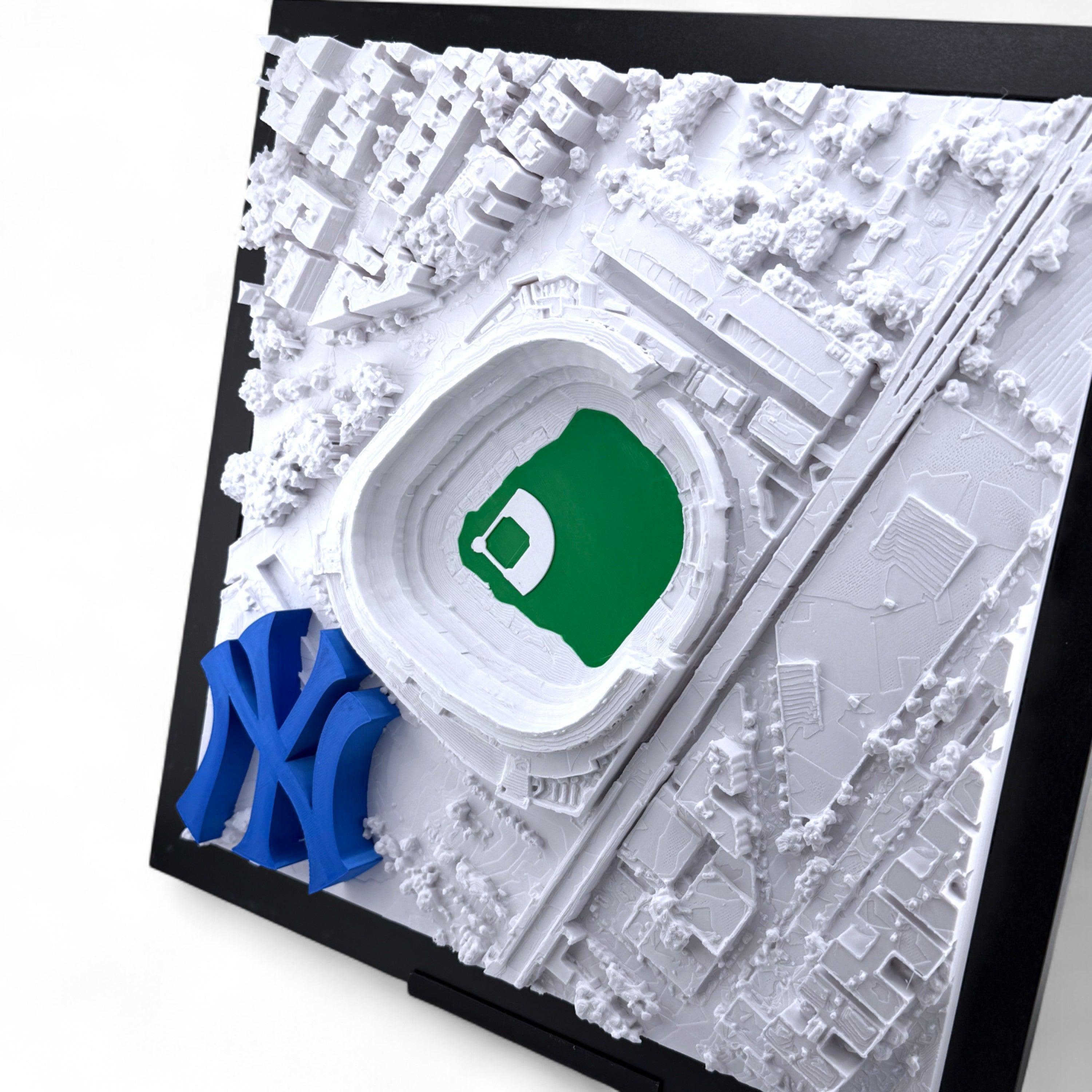 Celebrate your New York Yankees pride with this detailed Yankee Stadium topographical map wall art. Available in 8x8 and 12x12 inches, the prints are crafted from durable American-made plastics, ensuring lasting quality. Choose a classic black or rustic brown frame to match your décor, and personalize it with an optional metallic text plate in gold or silver. Customize your text using three stylish fonts—serif, script, or bold—for a unique tribute that stands out in any room. Perfect for fans wanting to showcase their team spirit with a touch of elegance.