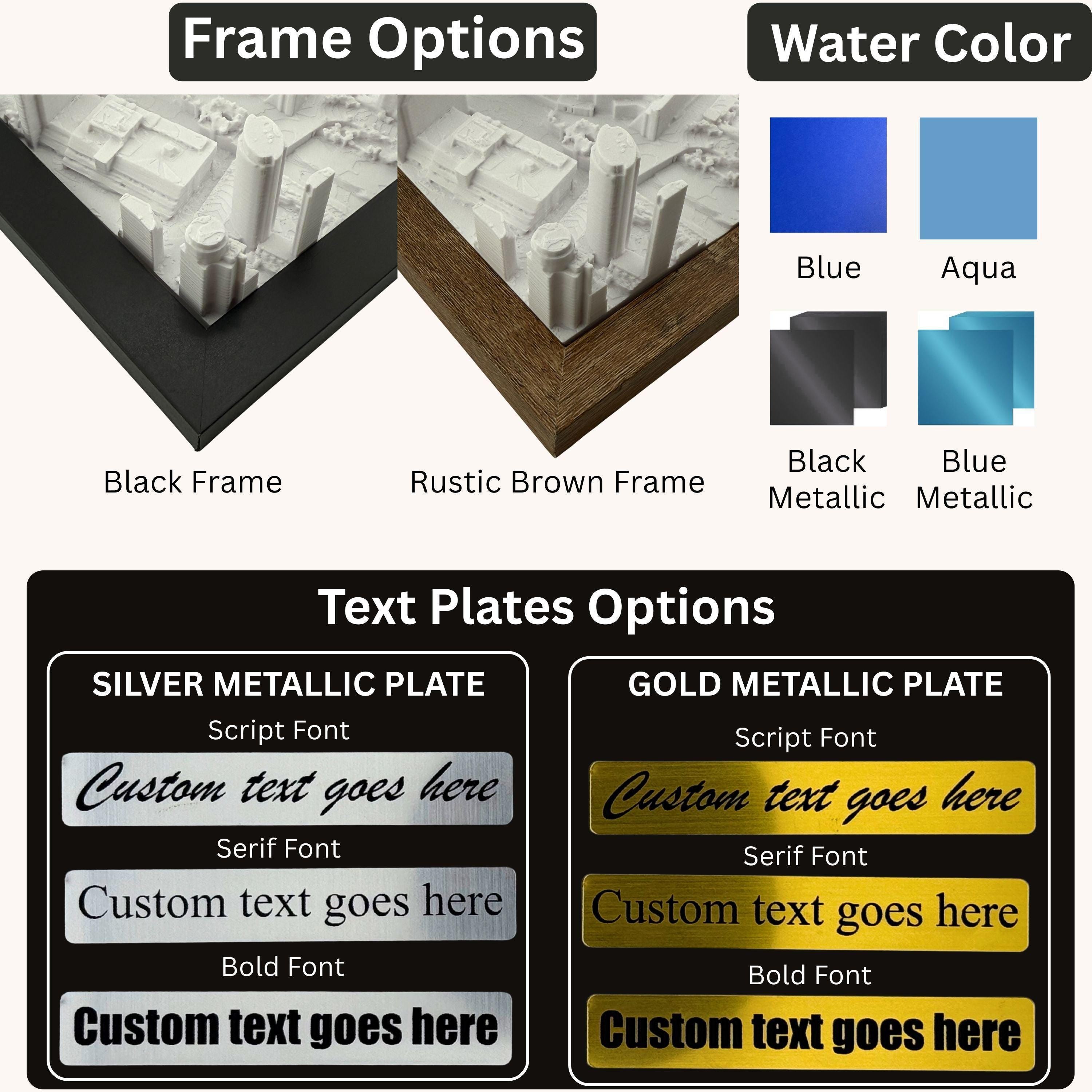 * Optional Text Plate: Gold or Silver metallic with customizable text (serif, script, or bold fonts)