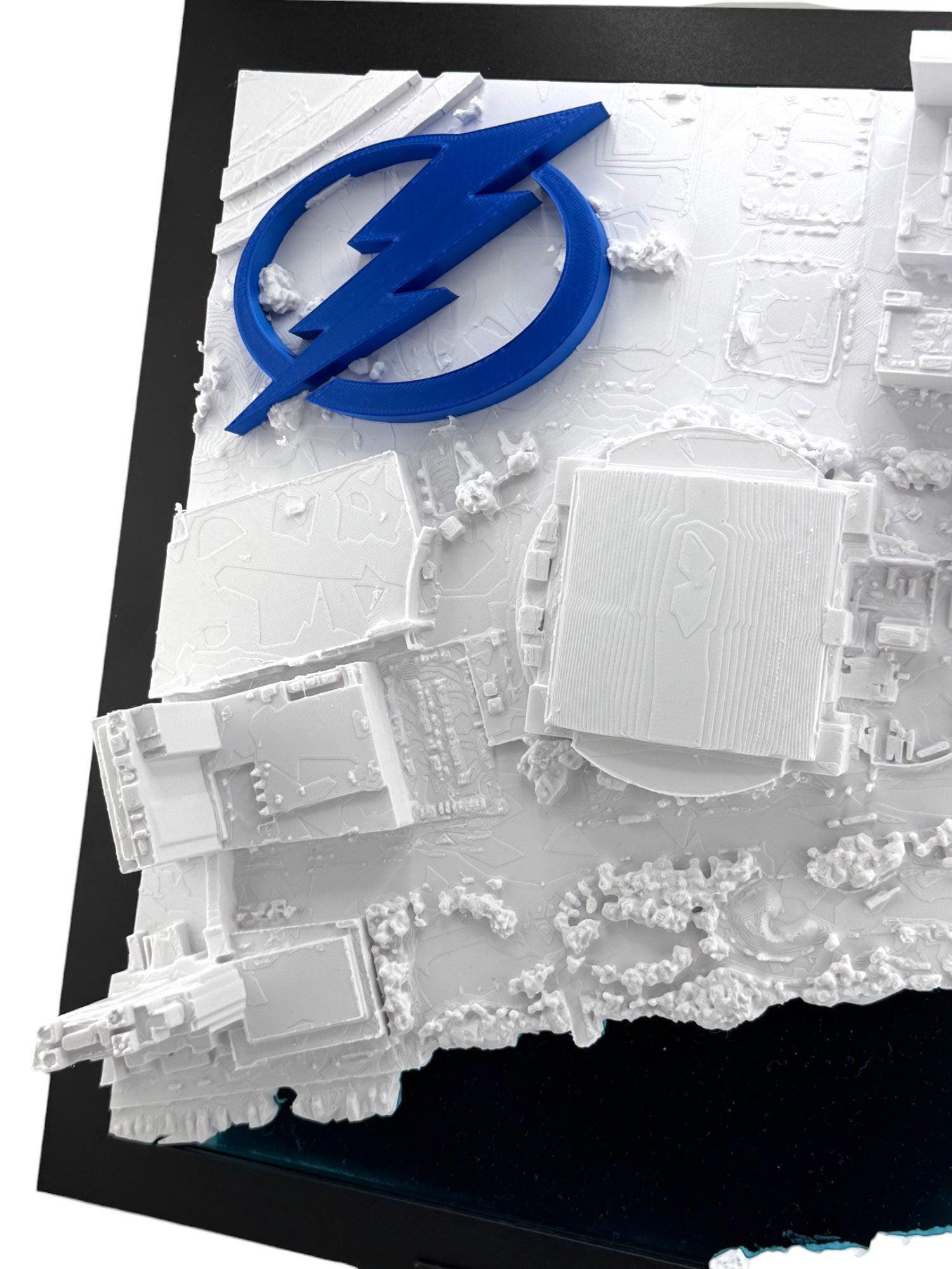 Celebrate your team pride with the Tampa Bay Lightning Benchmark International Arena Framed Wall Décor. This detailed topographical map art showcases the arena’s layout in a precision 3D-printed design, paired with the official Tampa Bay Lightning logo for a sleek, professional display piece.