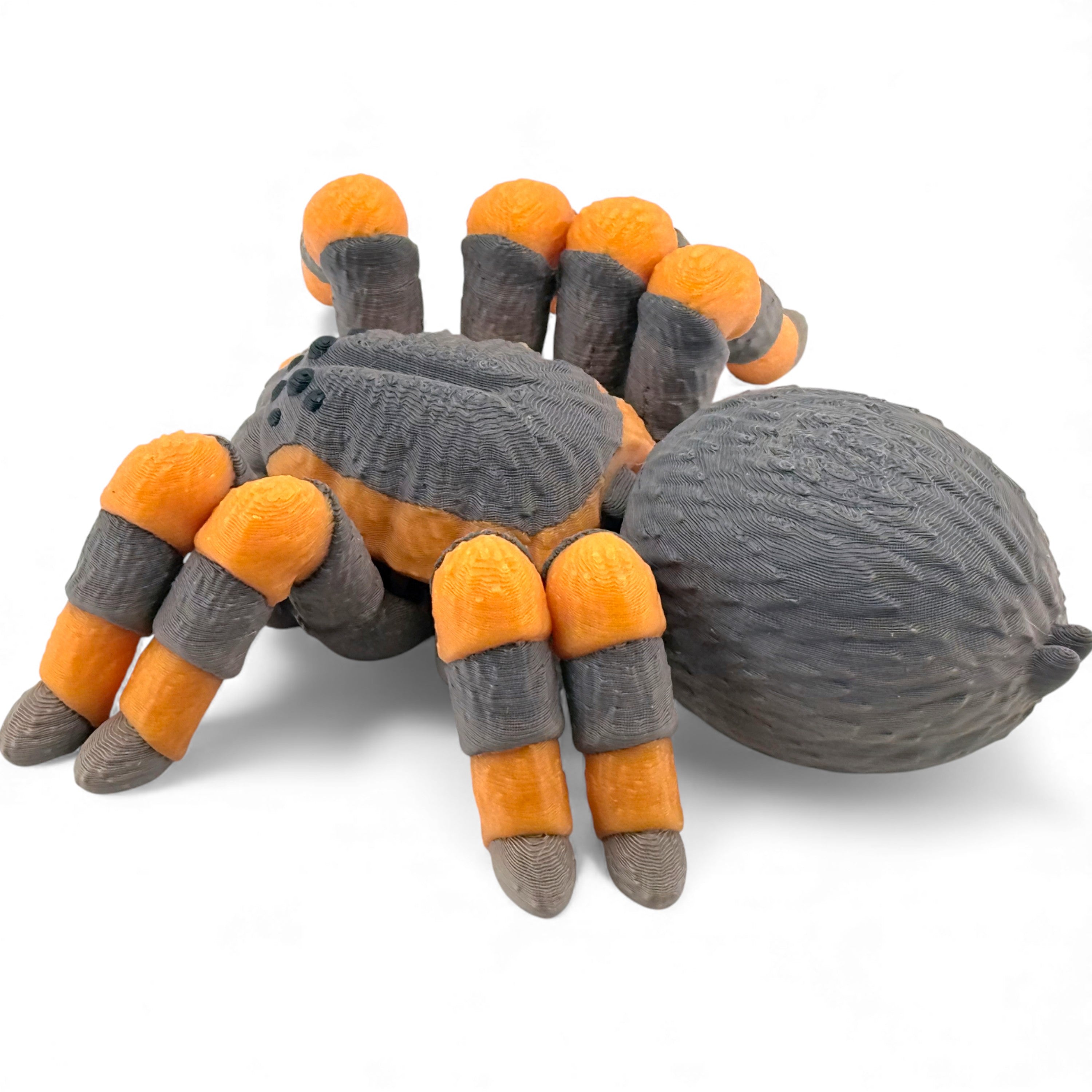 This 3D Printed Tarantula features a warm, earthy brown and orange gradient enhanced by bold black markings, creating a lifelike and naturally inspired appearance. The subtle color transitions highlight the model’s sculpted texture, while the dark patterning adds depth and realism. With articulated legs and finely detailed surface work, it delivers an authentic tarantula feel in a compact display size. Measuring 4.5 inches long, 5 inches wide, and 2 inches high, it’s perfect for collectors, nature lovers, or anyone who enjoys realistic 3D-printed creatures.