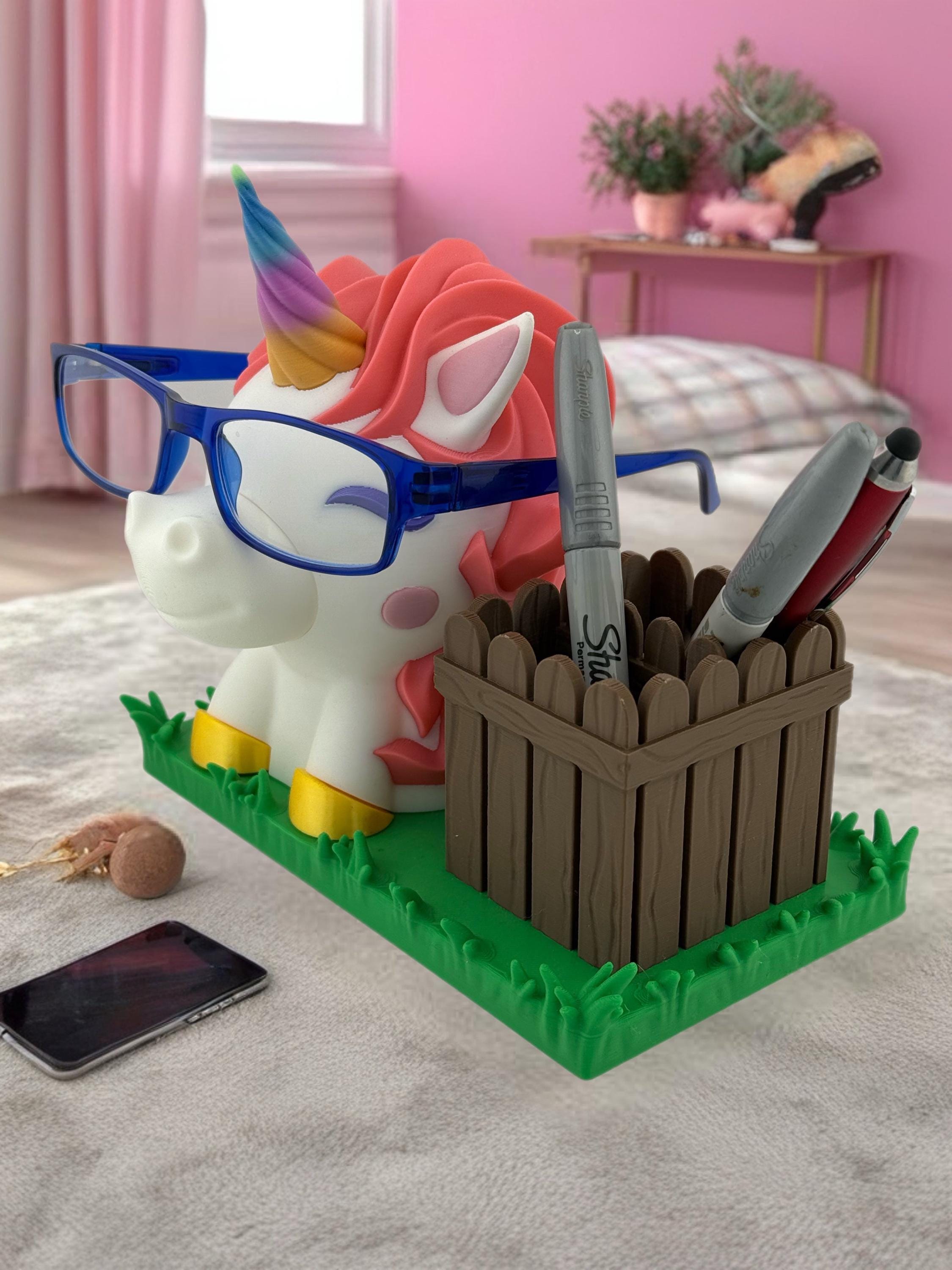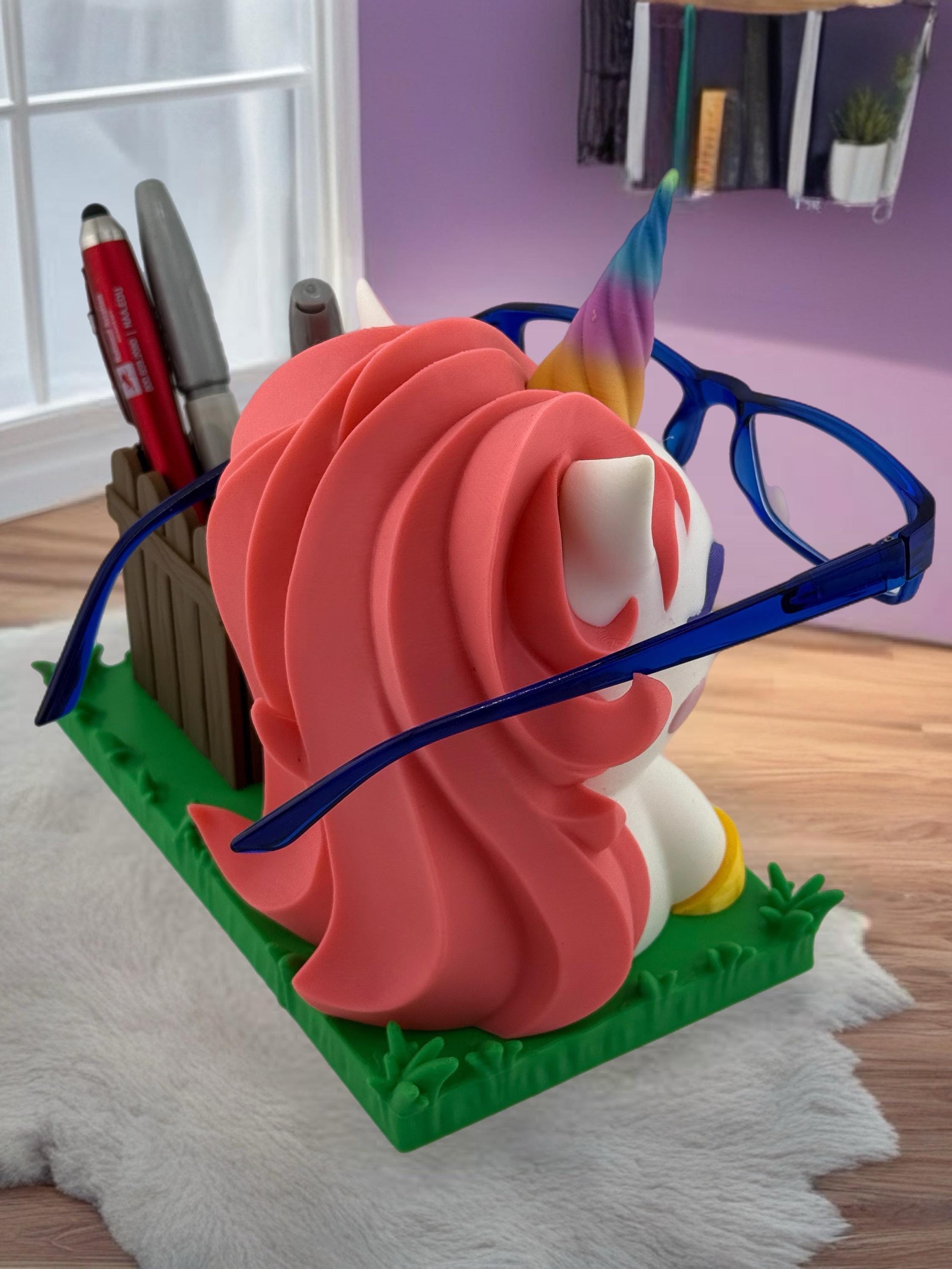 3D Printed Unicorn Glasses Holder & Pencil Cup – Functional Fantasy Desk Décor